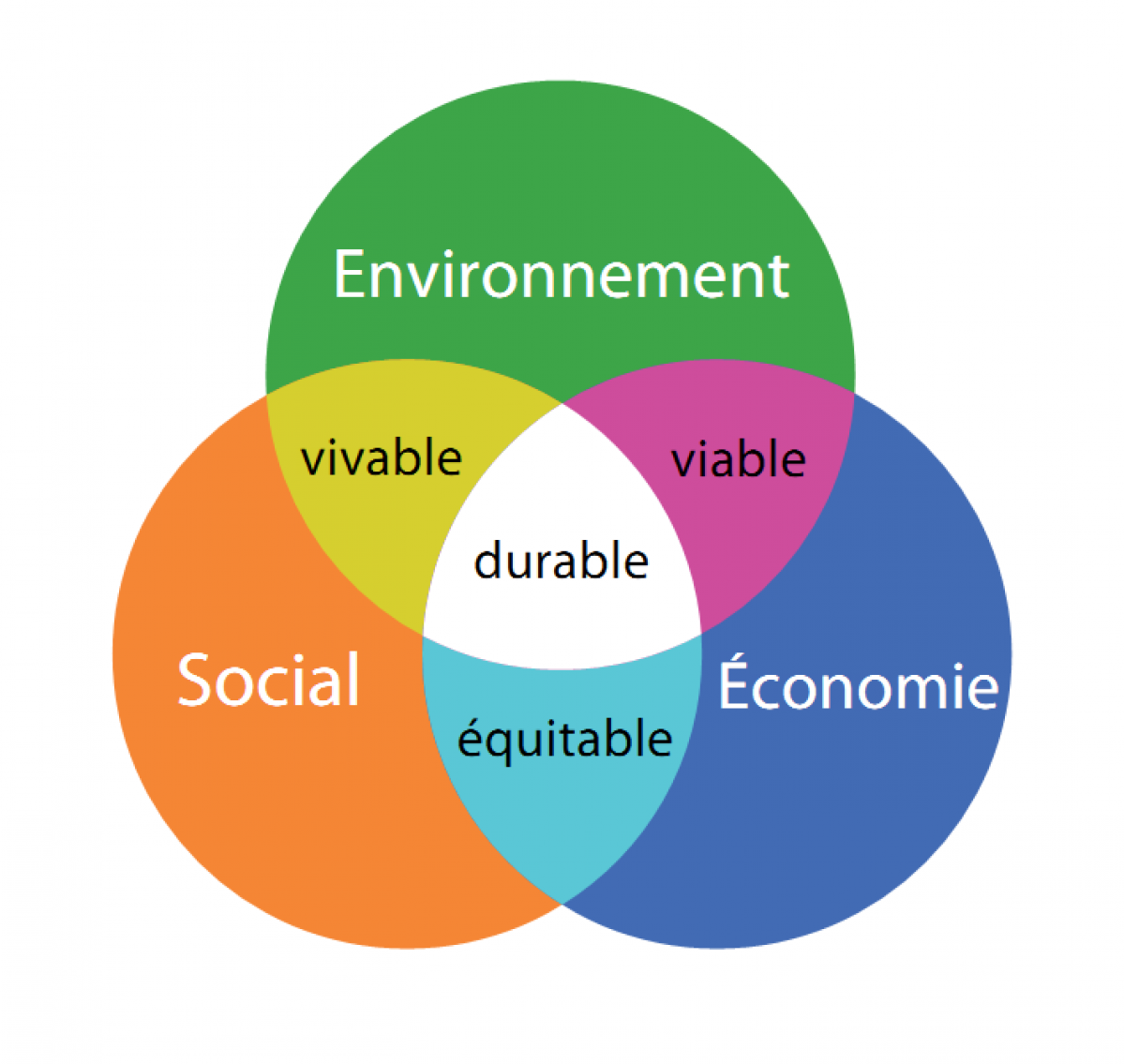 L'objectif du développement durable est de définir des schémas viables qui concilient les trois aspects écologique, social et économique des activités humaines : "trois piliers" à prendre en compte par les collectivités comme par les entreprises et les individus. La finalité du développement durable est de trouver un équilibre cohérent et viable à long terme entre ces trois enjeux. A ces trois piliers s'ajoute un enjeu transversal, indispensable à la définition et à la mise en oeuvre de politiques et d'actions relatives au développement durable : la gouvernance.